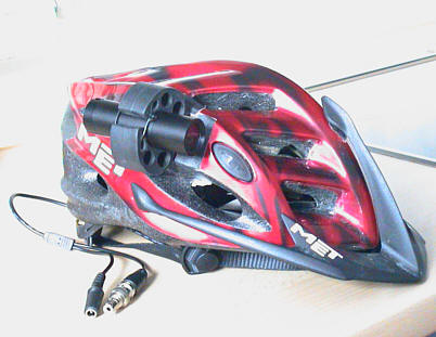 Endgültige Position am Helm und die Anschlusskabel die zum