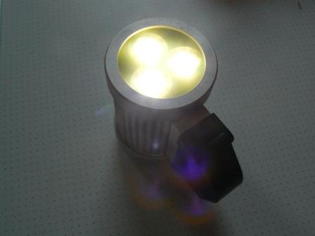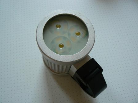 Lampe mit 3x 1W Ledemitter und integriertem Akku. Leuchtdauer ca. 3,5h Für die Übergangszeit genau richtig ins Geschäft.