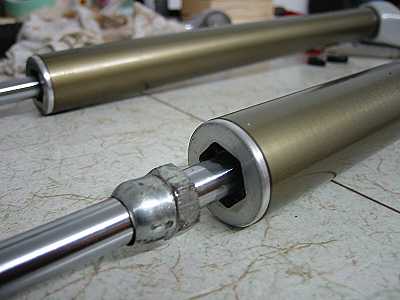 die beiden Kartuschen mit den Führungsstangen, die in den Standrohren