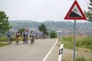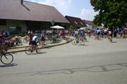 Ist doch immer wieder eine Herausforderung auch wenn man nur die 210km Runde fährt bei Km 170 die Steigung von 18% hoch zudrücken. Oben auf dem Sattel Wasservorräte auffüllen einen super guten Hefezopf essen, Müsliriegel rein, am großen Wasserfass sich kurz abkühlen und dann nichts wie weiter mit rauschender Geschwindigkeit runter nach Unterböhringen. Dort durch eine Gruppe mit Wasserspritzen ausgerüstete kleine Mafiabande (tut gut, aber da gibt es Leute die sehr aggressiv darauf reagiert haben) die nächste Steigung mit 14% hoch nach Oberböhringen. Von nun an ging es wieder rasant bergab bis nach Geislingen. Dort kam man sich Temperaturbedingt langsam wie in einem Gulaschkessel vor. Durch Geislingen durch und schon kam als nächste Herausforderung die lange zum Schluss hin viel in der Sonne verlaufende Steigung nach Stötten.
