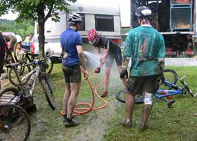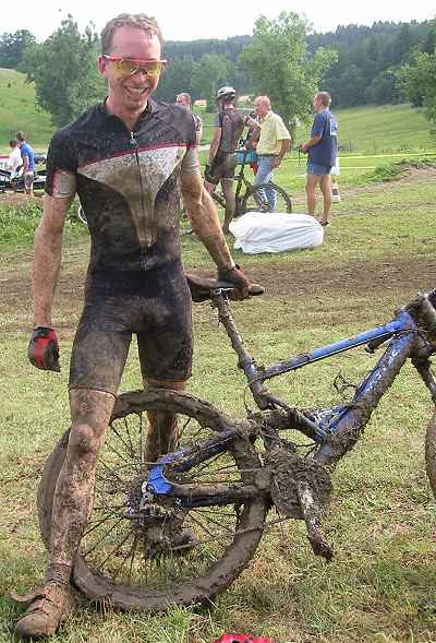 genug, setzt sich ab der dritten Runde mein Vorderrad dermassen mit Schlamm zu,