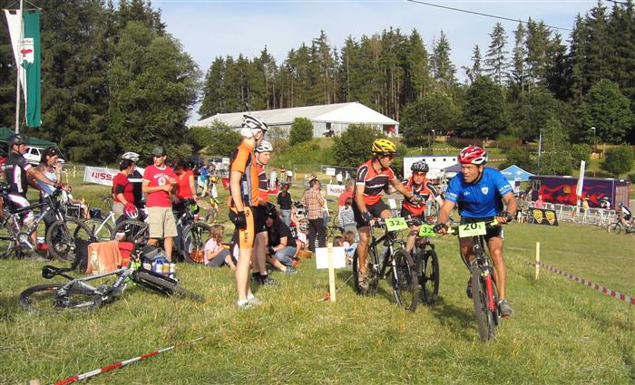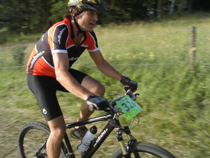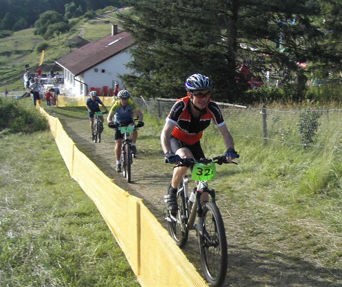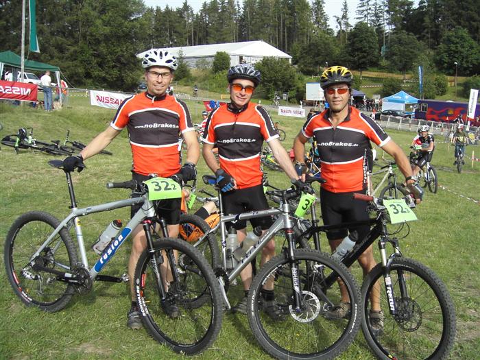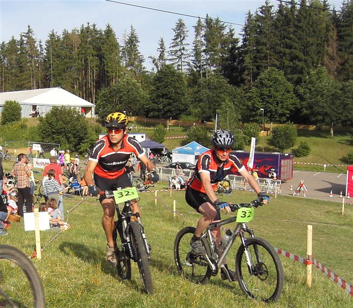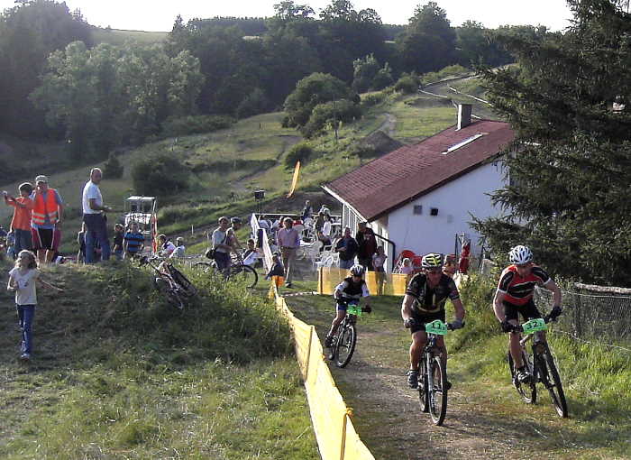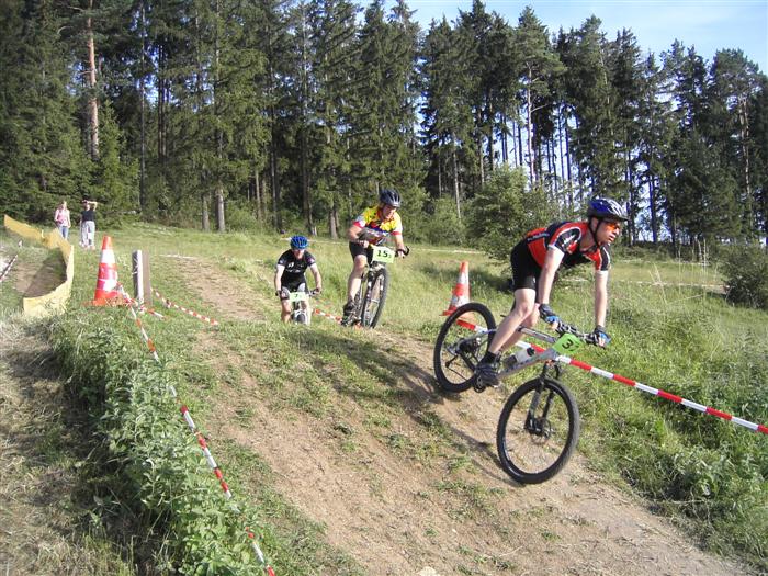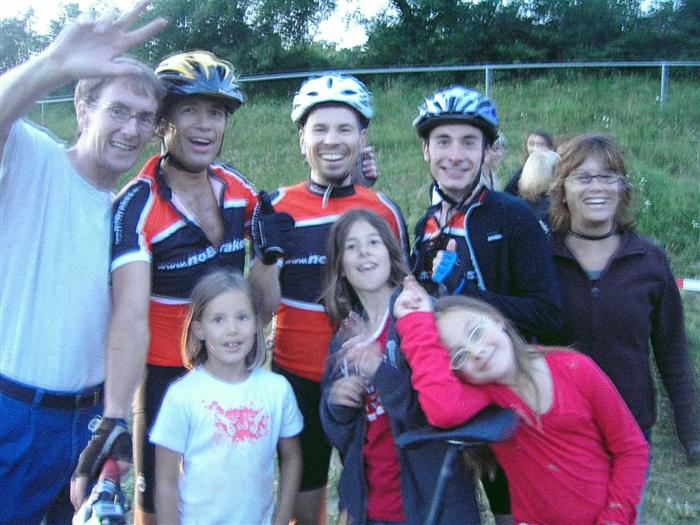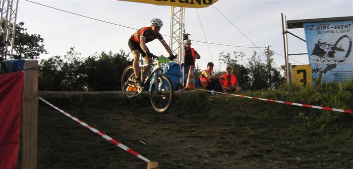 dreistündigen King Bike Night 2007. Insgesamt haben 34 Teams zu je 3 Fahrern gemeldet. Das Rennen startet Abends um 18:30 und geht drei Stunden bis zur Dämmerung um halb zehn. Hardy, Daniel und ich sind hoch motiviert und wir hoffen, uns in dem Starterfeld behaupten zu können. Der Start erfolgt in Le Mans Manier. Leider muss ich aufgrund der Nachmeldung von fast ganz hinten starten und darf mich sogleich durch Feld arbeiten. Glücklicherweise gibt es am ersten Anstieg keinen Stau, so dass ich keine Zeit verliere. Unsere Strategie, nach 5 Runden zu wechseln, verwerfe ich bald und übergebe nach der dritten Runde an Daniel. Nach drei Runden kommt auch er raus und übergibt an Hardy. Wir diskutieren unsere Strategie und beschliessen, nach 2 Runden zu wechseln. Diesen Rhythmus werden wir bis zum Schluss beibehalten. Durch die kurzen Belastungszeiten und die Erholungspausen können wir die Rundenzeiten klein halten und sind so sehr schnell unterwegs. Angefeuert von den zahlreichen Fans rund um die Strecke haben wir uns nach ca. 2 Stunden Renndauer bis auf den 10. Platz vorgearbeitet und können diesen auch bis zum Schluss verteidigen. Auf meinem letzten Turn gebe ich alles und fahre mich komplett leer, Daniel mobilisiert auch noch mal alle Kräfte und übergibt an Hardy. Auch Hardy lässt nichts mehr anbrennen und fährt unseren 10. Platz über die Ziellinie. Mit insgesamt 44 Runden sind wir 6 Runden langsamer als das Team der Erstplatzierten. So können wir für dieses Rennen eine Top-Ten-Platzierung ins Renntagebuch eintragen. Zum Einen eine Leistung, die den Fahrern zuzuschreiben ist, zum Anderen aber auch eine Leistung unserer zahlreichen Fans an der Strecke, die uns unermüdlich über die drei Stunden begleitet und unterstützt haben. Ein herzliches Dankeschön an dieser Stelle.