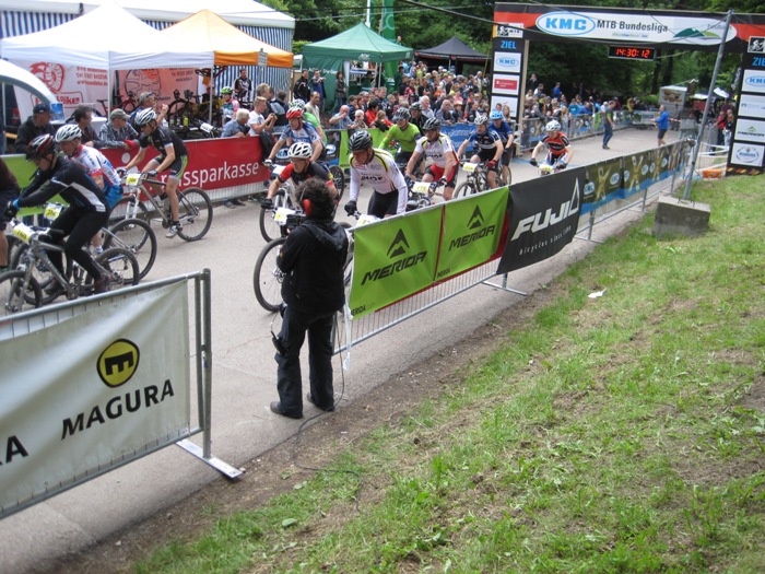 Auch dieses Jahr findet das legendäre Rennen unter dem Rosenstein statt. Am Samstag bei den Hobbyrennen versuche ich ins Geschehen einzugreifen und nehme an dem Cross Country Hobbyrennen teil. Aufgrund der Nachmeldung muss ich leider von ganz hinten starten, und fahre erst mal dem ca. 50 Starter zählenden Feld hinterher. Ich fühle mich heute gut und kann mich langsam nach vorne arbeiten, bis ich 4 Runden vor Schluss in den Top 5 Plätzen angekommen bin. Kurz bevor ich mich auf den 3. Platz vorarbeiten kann, versagt aber leider das Material. Ein Rahmenbruch macht eine Weiterfahrt unmöglich. Schweren Herzens muss ich auf Podestplatz liegend mein Rad ins Ziel tragen und erreiche irgendeine Platzierung mit 4 Runden Rückstand.