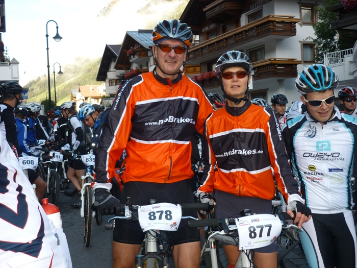 Kurz vor 8 fuhr Helmut am Startplatz vorbei um das Startgeschehen im Auge zu behalten. Der Start zum Ischgl Ironbike war um 8.30 Uhr. Es war klar: Ein guter Startplatz ist für die Kurzstrecke notwendig, um vorne mit dabei zu sein.
