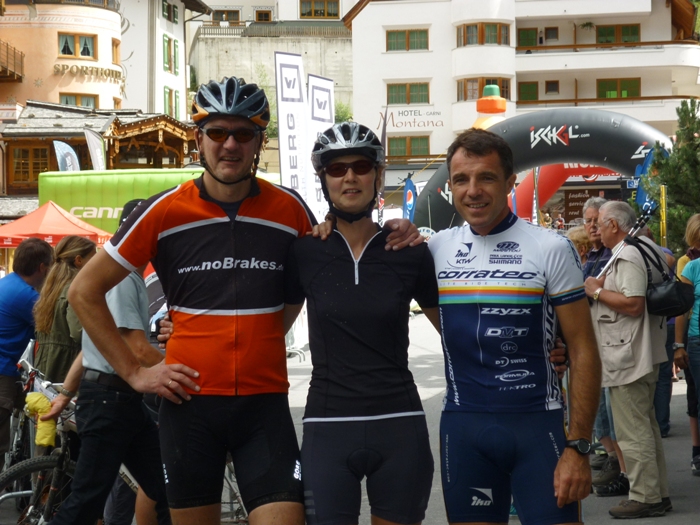 Im Ort war die Streckenteilung: Erst hier musste man sich entscheiden, ob man ins Ziel oder auf die Idalpe hoch fährt. Andi fuhr hoch. Im Ziel angekommen, konnte man bei bestem Wetter, ohne zu frieren, auf weitere Teilnehmer warten und die erstklasse Zielverpflegung geniessen.