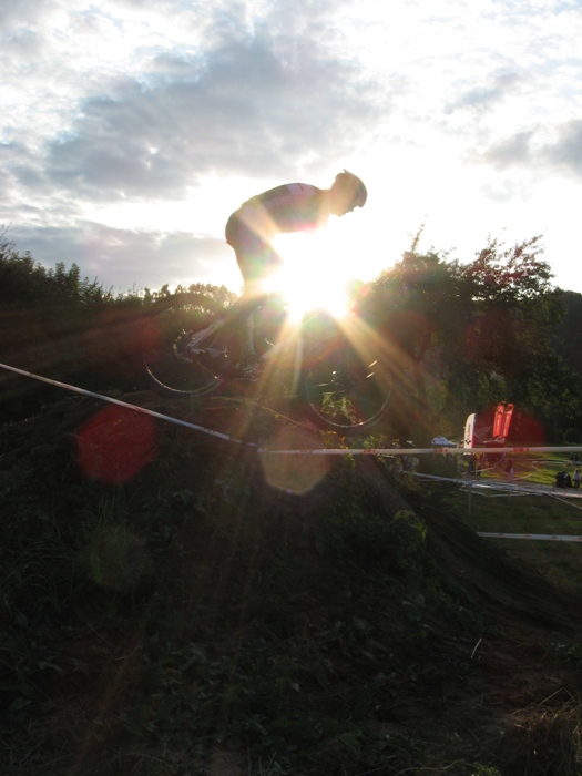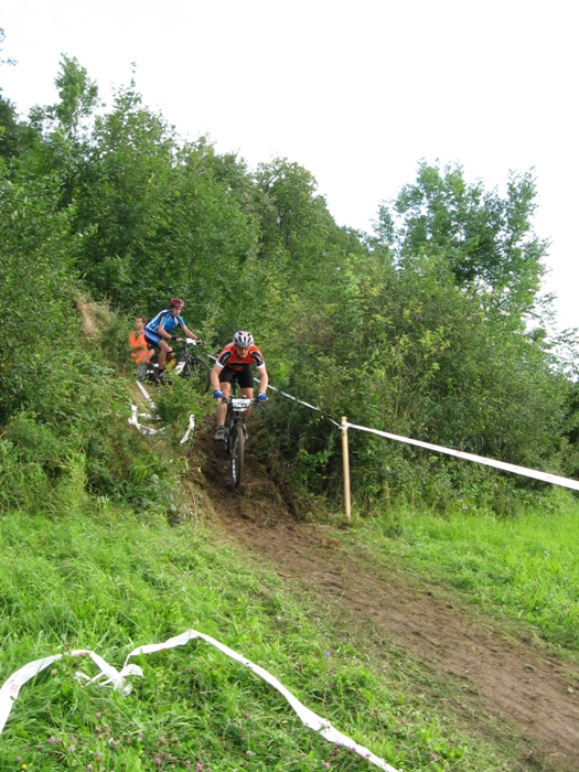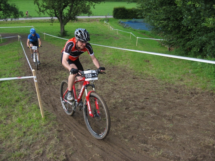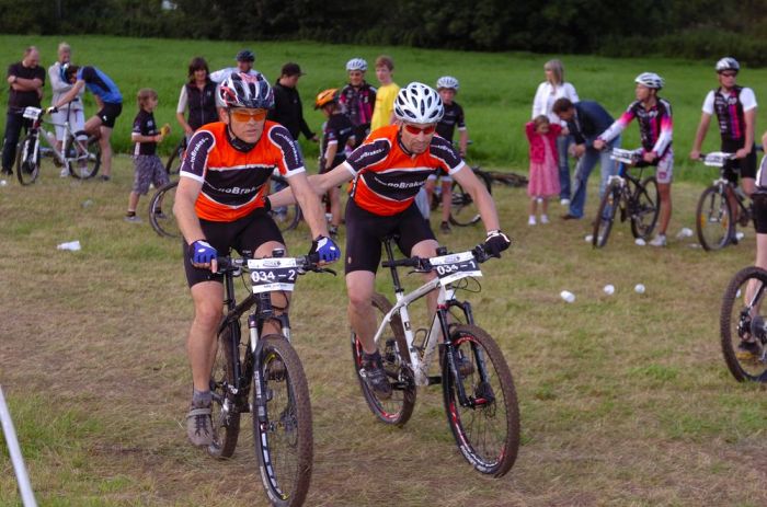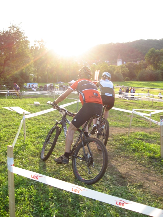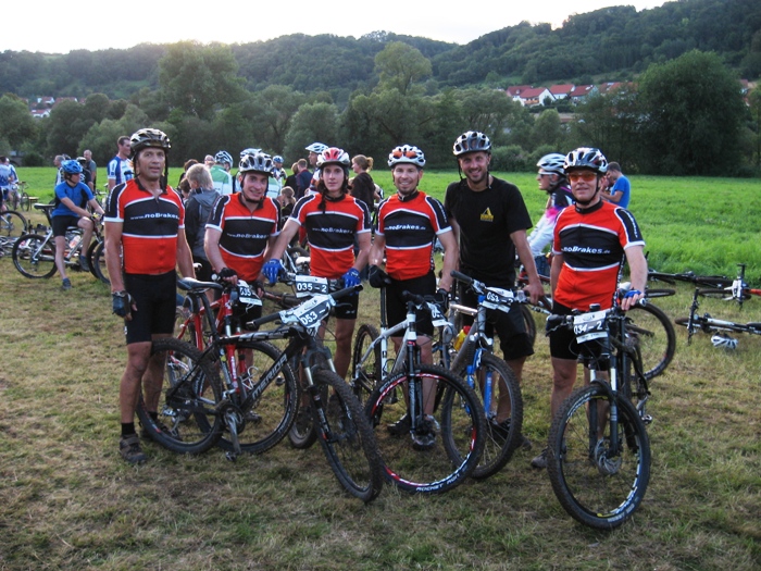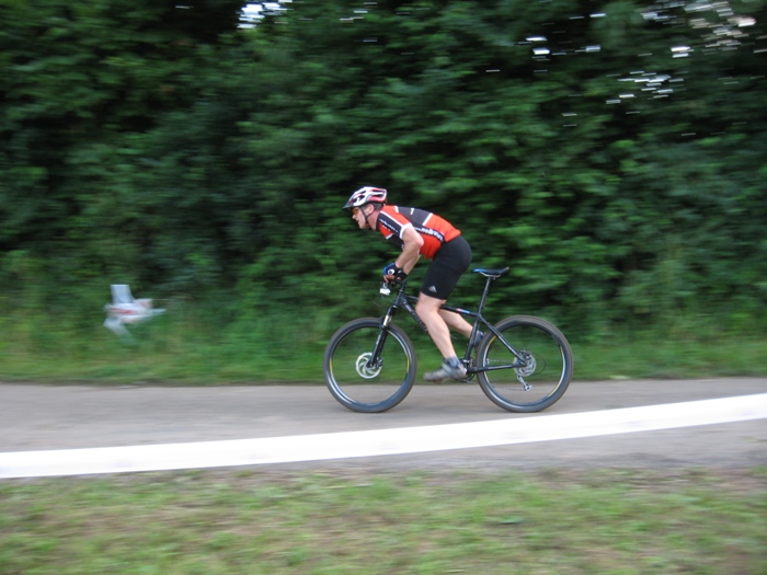 ![]() Voller Erwartung fahren wir nach Enslingen. Das Rennen, die "Optima Bike Challenge", fand schon 2008 statt, und es war damals bei der Premiere schon ein klasse Event. Zudem ist das Wetter heute nahezu perfekt. Hat es die Tage zuvor immer mal wieder heftig geregnet, sieht es heute sehr gut aus. Und die Temperaturen zwischen 20 und 25 Grad sind ideal für ein schnelles Cross Country Rennen. Der Rennmodus ist gleich wie im Jahr zuvor. Gestartet wird im 2er Team, wobei immer einer der beiden Fahrer auf der Strecke ist. Die Streckenführung ist dagegen komplett anders als im Vorjahr. Als hätte sich jemand darüber beschwert, dass die Strecke zu einfach war, sind nun einige anspruchsvolle Bergauf und Bergab-Stücke eingebaut. Uns ist das grade recht, so können wir an den Stellen wo andere runter oder hochschieben, immer ein paar Plätze gut machen. Wir starten dieses mal in folgender Teambesetzung: Team 1: Daniel Lindorfer, Manuel Kramer Team 2: Helmut Hägele, Siggi Kramer Team 3: Hardy Wiederspohn, Ralf Berhalter Das Team 3 bildet sich erst kurz vor dem Start. Hardy findet bei der Anmeldung noch einen weiteren Einzelstarter, Ralf von www.Haubn.de, seines Zeichens Spezialist für Kopfbedeckungen aller Art. Sie bilden zusammen das Team 'HaubnBrakes'. Das Rennen beginnt mit einem lustigen Le Mans Start. Das sorgt für Stimmung und das Feld zieht sich gleich ein wenig auseinander. Der Hobby-Gedanke steht eh an oberster Stelle. Das Fahrerfeld ist komplett gemischt. Vom 10 jährigen Hobbybiker über rennunerfahrene Gelegenheitsradler und semiprofessionellen Wettkampfracer. Auf der Strecke geht es somit absolut fair zu. Alle passen aufeinander auf. Nicht die Zeit, sondern Fairness und der Spass stehen im Vordergrund. Trotzdem wird natürlich um jeden Platz gekämpft. Das Team 1 hält sich über den gesamten Rennverlauf knapp hinter der Führungsgruppe, immer zwischen dem 6. und 9. Platz. Am Schluss sind dann die Top Ten leider doch nicht erreicht, und es steht der 11 Platz in der Ergebnisliste. Das passt nicht ganz mit unseren Analysen zusammen, aber egal. Das Team 2 schlägt sich wacker und fährt mit gleichmässigen Rundenzeiten einen 14. Platz nach Hause. Das Team 3 verliert leider etwas Zeit. Hardy muss nach Kettenriss fast ein halbe Runde in die Wechselzone rennen. Zum Glück ist SiggiH gerade anwesend und kann mit ruhiger Hand die Kette neu vernieten. Zudem klappt das teaminterne Timing beim Wechsel nicht immer optimal, was weitere kostbare Sekunden kostet. So wird es dann ein 24. Platz, der aber unter Anbetracht der Vorkommnisse und der insgesamt 42 gewerteten Herrenteams super ist. An dieser Stelle ein dickes Dankeschön an die mitgereisten Fans, die Familie Lindorfer, die uns in der Wechselzone bestens unterstützt hat, an SiggiH fürs Fotografieren und Kette reparieren, und an Herbert Kunze, der uns seine Fotos 'einfach so' überlassen hat. Und natürlich an den Veranstalter, das Team um die Freeriders Kochertal für die wieder einmal erstklassig organisierte Veranstaltung. Es hat Spass gemacht und wir freuen uns auf eine Wiederholung in 2010. Helmut Hägele Das Team und die Betreuer vor dem Start, Foto: Siegfried Hügler Le Mans Start, Foto: Siegfried Hügler ![]() Daniel am Hubbel, Foto: Herbert Kunze ![]() Team1 in der Wechselzone, Foto: Herbert Kunze ![]() Manuel kurz nach dem Überholen, Foto: Herbert Kunze ![]() Hemme im Kurvenwirrwarr, Foto: Herbert Kunze ![]() Team 2 in der Wechselzone, Foto: Herbert Kunze ![]() Siggi am Bretterhubbel, Foto: Herbert Kunze ![]() Hardy noch mit Kette, Foto: Herbert Kunze Ralf am Bretterhubbel, Foto: Siegfried Hügler Siggi an einer der Abfahrten, Foto: Siegfried Hügler Hardy an der schmierigen Abfahrt, Foto: Siegfried Hügler Raceaction, Siggi kurz vorm Überholen, Foto: Siegfried Hügler Tempo machen auf dem kurzen Asphaltstück, Foto: Siegfried Hügler Knackiger Uphill kurz nach dem Wechsel, Foto: Siegfried Hügler Hardy im Kurvenlabyrinth, Foto: Siegfried Hügler Tolle Abendstimmung, Foto: Siegfried Hügler Ralf kurz vor Start/Ziel, Foto: Siegfried Hügler Hardy ohne Kette unterwegs, Foto: Siegfried Hügler In der Wechselzone heisst es "warten", Foto: Siegfried Hügler