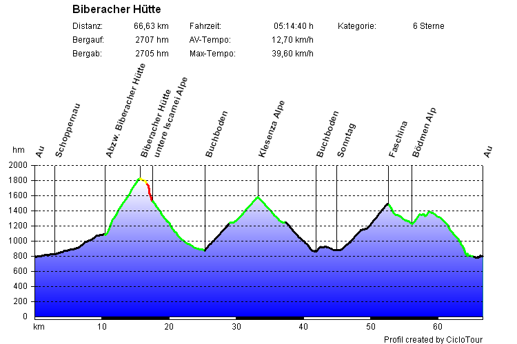 Heute geht's zur Sache. Beeindruckt von den anstehenden 3000 hm trinken am Abend zuvor alle ein Bier weniger. Bei anfangs strahlendem Sonnenschein rollen wir gemütlich auf der Strasse bis zum Abzweig zur Biberacher Hütte. Da gerade Almabtrieb ist, lassen wir die Kühe passieren. Die Kuh macht muh und der Biker kuckt zu. Kaum sind wir auf Schotter, wird's heftig. Der Anstieg zur Biberacher Hütte ist einer der knackigen Sorte. Zumindest der untere Teil ist dermassen steil, dass ständig das Vorderrad gen Himmel strebt. Und hat man mal das Vorderrad unter Kontrolle, dreht das Hinterrad auf dem vom Regen und Kühen aufgeweichten Boden durch. Weiter oben ist der Weg angenehmer und wir erreichen bei aufziehender Bewölkung die Biberacher Hütte. Kalt ist's und ziehen tut's, so dass wir gleich weiterfahren. Auf technisch anspruchsvollem Trail und anschliessender übler Schiebepassage erreichen wir die Untere Iscarnei Alpe. Hier geht's nach einem kurzen Vesper mit Top Speed auf Schotter abwärts. Kurz vor Buchboden biegen wir links ab zur Klesenza Alpe. Hier angekommen flüchten wir sofort in die Hütte, da es draussen wieder irgendwie kalt ist. Nach ein paar Stück Kuchen geht's uns besser, und wir schreiten entschlossen nach draussen, um die Passage über das 'Sättele' in Angriff zu nehmen. Während der Kuchenpause hat sich aber das Wetter deutlich verschlechtert und es beginnt zu regnen. Aufgrund der schlechten Bedingungen entschliessen wir uns, nicht über das Sättele sondern wieder ins Tal abzufahren. Hier wird es zum Glück wieder etwas wärmer und trockener. Auf Flusstrails und Asphalt rollen wir bis Sonntag. Ab hier geht es wieder aufwärts bis Faschina. Es fängt wieder an zu regnen. Und dass es oben wieder saukalt ist brauch ich ja nicht zu erwähnen. Ab hier geht es dann auf Schotter nur noch abwärts. Abgesehen von ein paar Zwischenanstiegen wäre die Fahrt bis Au eigentlich gemütlich. Hätte uns da nicht noch ein Gewitter eingeholt, das uns noch kurz vor der Haustür völlig durchnässt. So haben wir heute zwar nicht die 3000 hm-Marke geknackt, aber sicher einen neuen Rekord im Klamotten umziehen aufgestellt.