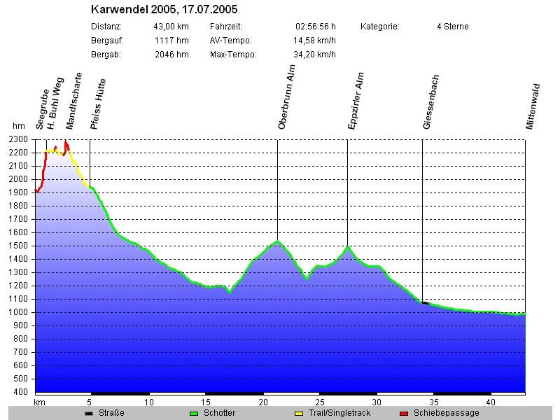 Fahrdaten: 1117 hm 43,00 km 2:56 Fahrzeit