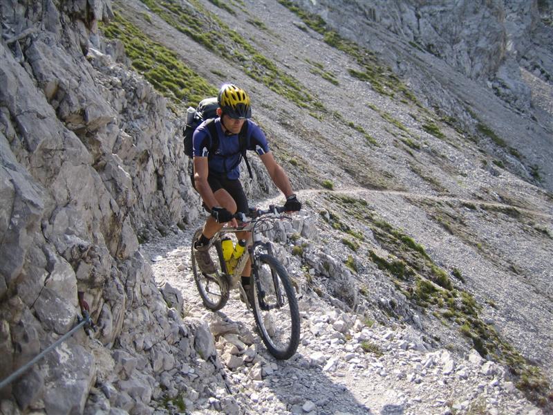 Anstiege mit zum Teil losem Schotter und Geröll, mehr Trage- und Schiebepassagen