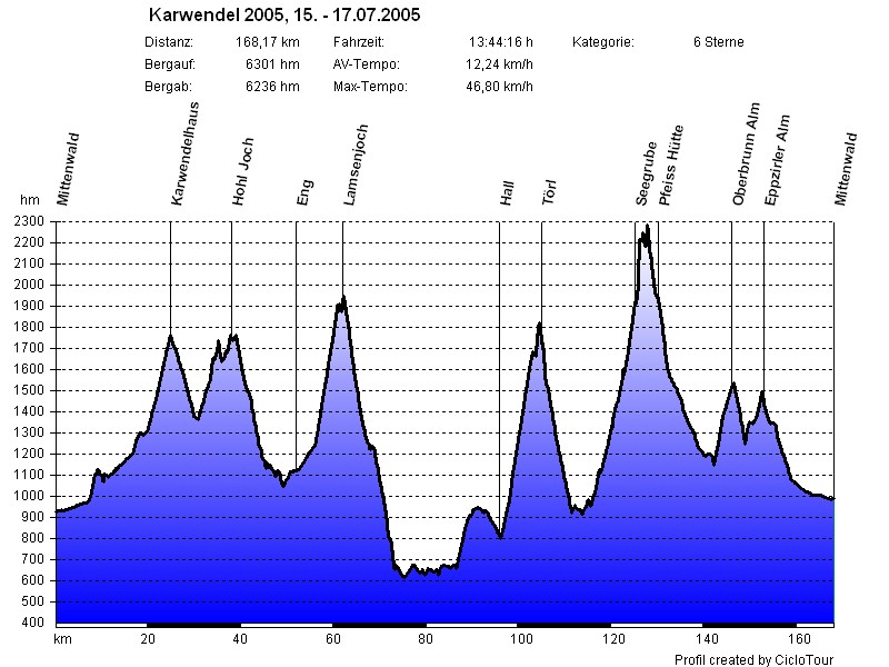 Gesamt Fahrdaten: 6301 hm 168,17 km 13:44 Fahrzeit