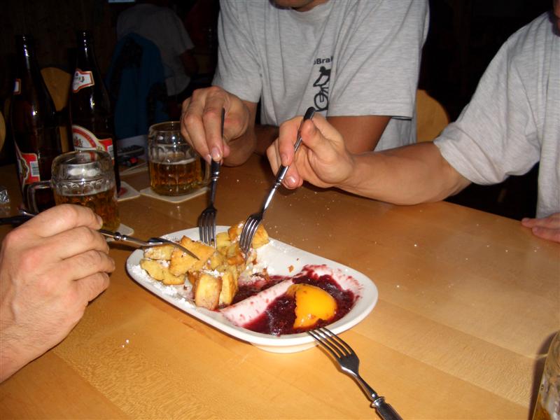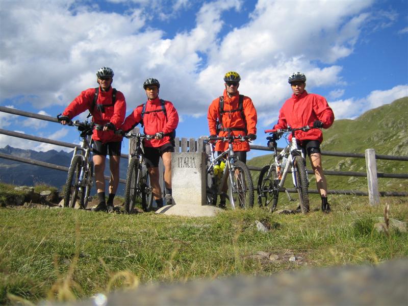Morgens wachen wir in unserem eiskalten Zimmer auf. Das Kondenswasser läuft am Fenster herunter. Die Klamotten sind fast feuchter als gestern. Auch die Schuhe im Trockenraum besitzen noch eine fast triefende Restfeuchte. Zu allem Überfluss musste ich mich während der Nacht mehrmals übergeben. Einer der drei Kaiserschmarren, die wir gestern Abend zum Nachtisch verschlungen hatten, war wohl nicht ganz hundertprozentig. Das Frühstück packe ich in den Rucksack, da mein verwirrter Magen ausser dem Kaffee und ein paar Krümel Brot noch nichts aufnehmen will. Und der nächste Hunger kommt bestimmt. Mittlerweile scheint draussen die Sonne vom stahlblauen Himmel und hebt die Temperaturen über den Gefrierpunkt. In der Nacht hatte es noch mal einige Zentimeter dazugeschneit. Die ersten Meter fahrend, dann wieder schiebend und tragend gehen wir talwärts. In der noch schattigen Senke ist es eiskalt, und unsere klammen Schuhe werden zu Eisklumpen. Wenigstens scheint der daran haftende Schnee etwas zu isolieren. Aber bald sind wir in der Sonne und der Weg wird angenehmer und gösstenteils wieder fahrbar. An dem Abzweig am Strommasten riet uns der Hüttenwirt nicht der linken TAC-Markierung zu folgen, sondern rechts den Wanderweg zu nehmen. Dies sei der bessere und kürzere Weg. Nun wissen wir zwar nicht, wie die TAC Variante ist, aber die rechte Variante können wir nicht weiterempfehlen. Bis zu der Brücke über den Bach ist noch alles fahrbar, aber dann wird bis hinunter nach Aussergschlöss fast alles geschoben und getragen. Das nächste Mal werden wir auf jeden Fall die TAC-Variante nehmen, die kann fast nicht schlimmer sein. Ab Aussergschlöss ist dann Touri-Slalom angesagt. Die Wanderer ziehen in Karawanen vom Tal herauf, der Parkplatz in Tauer ist proppevoll. Auf der Strasse geht's dann schnell weiter. Ständig abwärts fahren wir konstant um die 40 km/h und sind so schnell in Huben, wo wir Mittagspause machen. Wir biegen hier nach rechts zum Staller Sattel ab, um bei Mariahilf auf unsere Original Route zu stossen. Diese wäre über den Krimmler Tauern, Ochsenlenke und Klammljoch verlaufen. Der Anstieg zieht sich ganz schön und wir machen bei Mariahilf nochmals Pause bevor wir das Gsieser Törl in Angriff nehmen. Zunächst auf guter Schotterpiste biegen wir auf den Trail Richtung Blindis Alm ab. Zur Verwunderung der vielen Wanderer können wir hier mehr fahren als diese erwartet hätten. Bald ist aber Schluss mit Lustig und wir wechseln wieder die Disziplin und schieben einen gehörigen Anteil der Strecke. Ab der Blindis Alm ist dann teilweise wieder fahren angesagt, nur auf den letzten 300 hm zum Gsieser Törl geht nichts mehr und wir erreichen schiebend die Grenze zu Italien. Die Trailabfahrt gestaltet sich interessant, nur leider etwas zu kurz. Denn bald stehen wir an der ersten Alm wo es auf Schotter weiter geht. Wir fahren bis ins Pustertal ab und wollen eigentlich auf der Dürrensteinhütte übernachten. Bis wir unten im Tal sind ist es schon reichlich spät, und vor lauter Hektik bauen wir noch einen Verfahrer ein, der uns eine fast 20 km lange Ehrenrunde beschert. Jetzt ist uns wenigstens klar, dass wir heute nicht mehr auf die Dürrensteinhütte fahren. Wir versuchen auf dem Weg dorthin eine Übernachtung zu bekommen, was sich als ein nahezu unmögliches Unterfangen herausstellt. Das ganze Tal scheint ausgebucht zu sein. Die Gasthöfe in Schmieden haben nichts, die Hotels an der Strecke sind auch voll. Wir überlegen dann doch bis zur Hütte hoch zu fahren, aber ein Hotelwirt meint, dass hier alles inklusive der Dürrensteinhütte voll sei. So rollen wir zurück und versuchen unser Glück in Niederdorf. Aber auch hier hat keines der zahlreichen Hotels ein Zimmer für uns, zumindest sagen sie das. Eine Info gibt's natürlich auch nicht, und wenn, dann hätte die abends um 20 Uhr eh nicht mehr auf. So fragen wir einheimische Passanten ob's irgendwo Privatzimmer gibt. Scheint es aber auch nicht zu geben. Wir sind mittlerweile schon recht verzweifelt, als wir bei einbrechender Dunkelheit an der Pension Hurben ankommen. Ich frage nach Übernachtung für 4 Personen. Die Dame meint, sie hätte leider nur ein Doppelzimmer. Nun dauert es ein paar Minuten, bis ich der älteren Dame klar machen kann, dass wir das Zimmer auf jeden Fall nehmen, und dort auch zu viert rein liegen werden. Auf dem Speicher kramen wir eine Liege hervor. Die bekommt Oli. Alex und ich teilen uns das Doppelbett, Siggi als jüngster liegt ins 'Gräbele'. Wir haben wohl die letzten Betten im Umkreis von 20 km ergattert. Es ist schon spät, als wir in die nahe gelegene Pizzeria gehen, um zu Abend zu essen. Mein Magen rebelliert immer noch ein wenig, und ich schaffe nicht mal meine Pizza. Es sind aber genügend dankbare Abnehmer am Tisch. Die fehlenden Kalorien nehme ich in Form eines Isogetränks auf Getreidebasis mit Hefezusatz zu mir.