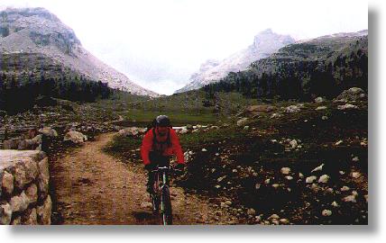 Phantastische Landschaftsformen begleiteten uns während dieser Etappe. Das Fanesgebiet hat seinen ganz eigenen Charakter. Bei der folgenden Auffahrt zum Rif. Son Forca muss am Anfang etwas geschoben werden, dann ist aber alles bis zur Hütte fahrbar.